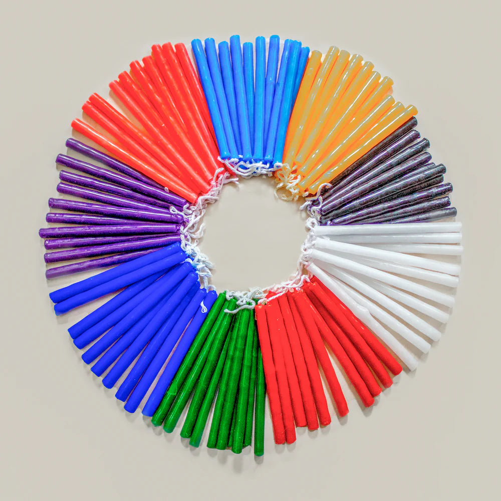 Each candle is handmade following ancient practices, with colors chosen to represent different intentions and energies.